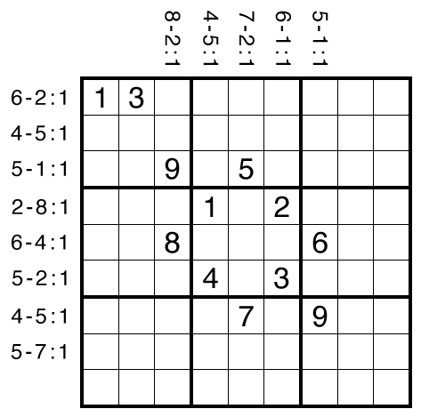 Pairs of numbers need to go into the grid, but with the proper distance between them. Take care and you'll find the unique answer.