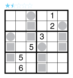 Season 4 warm-up Even/Odd Sudoku by Takeya Saikachi, with a set of four i's made out of the square and circle shapes that must be filled in.