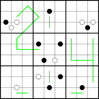 Wishing you all a Happy New Year 2024! RULES: Classic Sudoku rules apply. Adjacent digits along each green line have a difference of at lea...