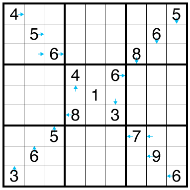 Returning again but with a slight orientation change showing another use of the sum arrows, here is Sum Detector Sudoku (Again) by clover!