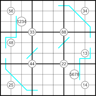 RULES: Classic Sudoku rules apply. Digits in circles must appear in the surrounding four cells, in some order. For each line, digits on th...